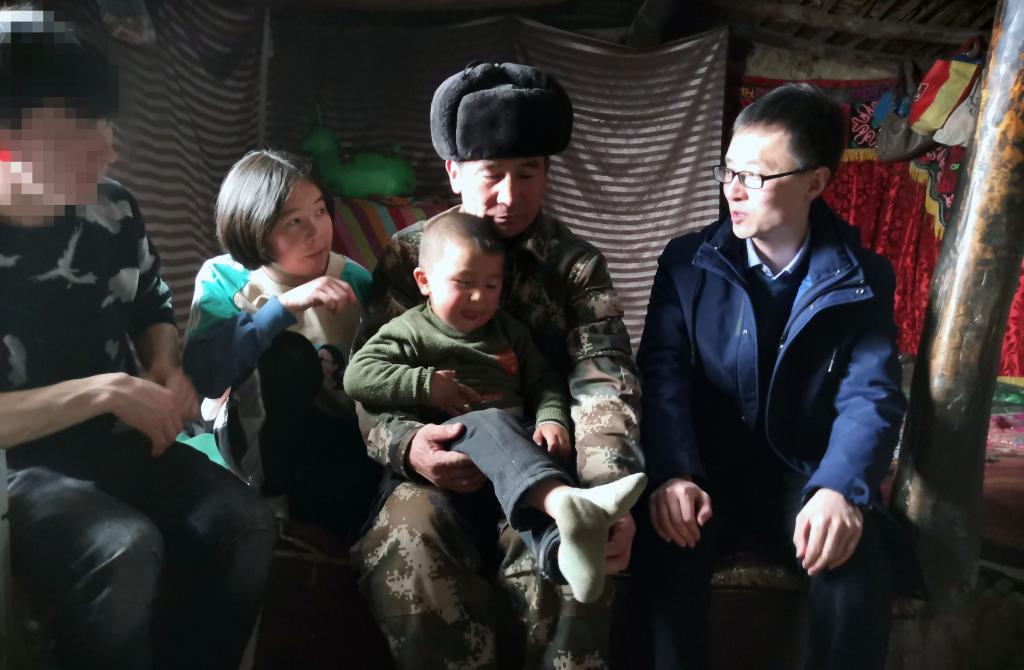 3月10日一早,家访组从新疆岳普湖县一路向北行进,经过三百余公里的长途跋涉,到达了距济南四千五百多公里大山深处的新疆乌恰县铁列克乡。在路途中,海拔骤升,遇上了风雪突降的恶劣环境,雪层深厚导致汽车行进非常困难,一路跌宕起伏,历经大风暴雪,在到达巴依同学家中时,家访组着实被眼前简陋的布置震惊了,土棚式的小房子里只有一张桌子、几个矮凳及一张供全家人休息的大通铺,仅有的电灯也只能靠太阳能发电。辅导员曹会龙在与巴依同学的父母交流中了解到,他是家中长子,父母身体欠佳,下有一弟一妹,因此他也早早挑起了家中重担,与同年龄段的少年相比,显得成熟许多。同时,这也与巴依同学从小受到的家庭教育有关,他的父亲是一名边防执勤护边员,即使身体因工受伤也不曾放弃护边任务,自身做了一名好榜样,并且对巴依同学在做人、学习方面要求严格。可见巴依同学全家虽然生活比较贫苦,但思想丰富充盈。家访接近尾声,巴依同学的父亲紧紧握住曹会龙的手说:“真的很感谢学校和老师对巴依同学的栽培,感谢老师对我的家庭的关心,我们一定全力配合学校的工作,让孩子学会感恩、报效祖国!”
