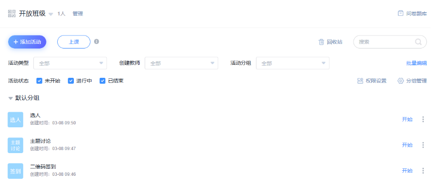 活动第二阶段,团队教师对新增的课程资源开展了集体备课学习活动,并就近期人工智能技术新发展在教育中的应用进行研讨,由此进一步加深对课程教学方向和重点的认知。随后,为了进一步通过课堂活动组织的多样性提升学生的注意力和参与度,韩晓玲老师着重介绍了学习通平台班级活动的新功能,以及自己上学期利用班级活动组织课程教学的一些经验,要求团队教师多利用平台的相关功能丰富课堂活动,让学生在做中学中体验技术给课堂教学带来的变化,学习如何通过适合的设计利用技术优化课程教学,培养技术融合教学的能力。