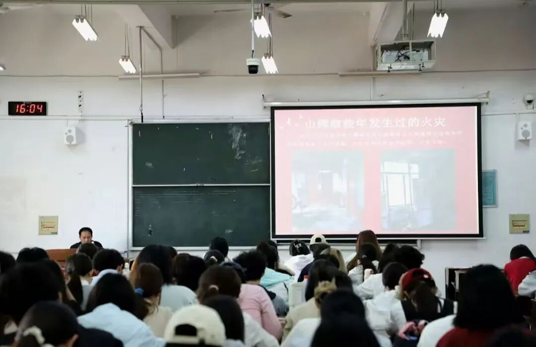 讲座中,杨延辉结合多起典型火灾案例展开讲解,通过图片与视频直观展示火灾危害,深入剖析校园火灾多发原因,重点指出违规用电等行为存在的严重安全隐患;通过食堂后厨失火的案例,着重强调了错误处置带来的危害,同时结合应急处置教学视频,细致讲解各种灭火器材的使用方法与火灾逃生指南,强调安全施救原则,引导大家牢固树立“预防为主,防消结合”的消防安全理念,呼吁同学们要关注消防安全、珍爱生命。