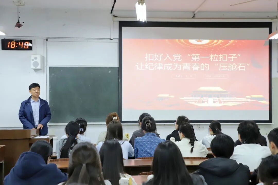 王珂系统梳理了从党的一大强调纪律,到新时代全面从严治党背景下党的纪律建设百年历程,阐释了纪律建设作为党的生命线和重要政治优势的深远意义。他结合中央纪委国家监委“两块牌子、一套班子”的职能定位,深入解读了“纪严于法、纪在法前”的鲜明原则,并重点围绕政治纪律、组织纪律、廉洁纪律、群众纪律、工作纪律、生活纪律等“六大纪律”, 结合警示教育案例与高校实际进行剖析,引导学员让纪律真正成为青春的“压舱石”。
