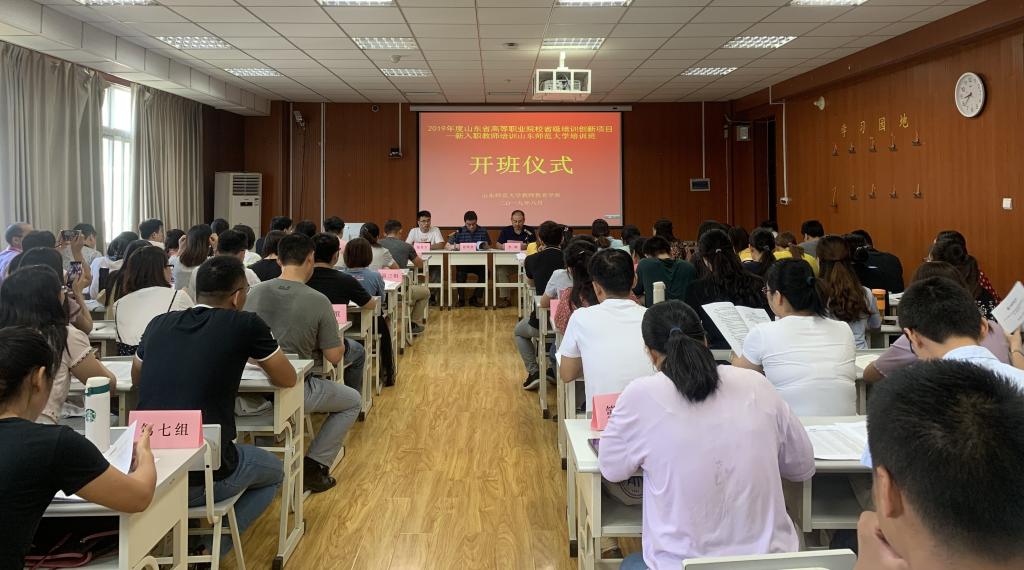 8月18日上午,“2019年度山东省高等职业院校省级培训创新项目——新入职教师培训”开班仪式在千佛山校区教学三楼3515教室举行,英国上市公司365副部长夏明堂,以及来自全省39所高职院校79名新入职教师出席了仪式。