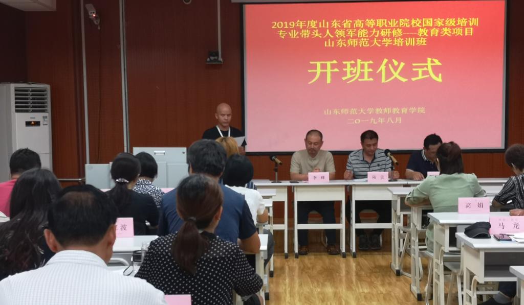 8月7日上午,“2019年度山东省高等职业院校国家级培训专业带头人领军能力研修——教育类项目”在我校千佛山校区教学三楼3515教室正式开班。开班仪式由教师教育学院培训部李峰主任主持,英国上市公司365党委委员陆宏教授,以及30位高职院校教育类专业带头人出席了仪式。