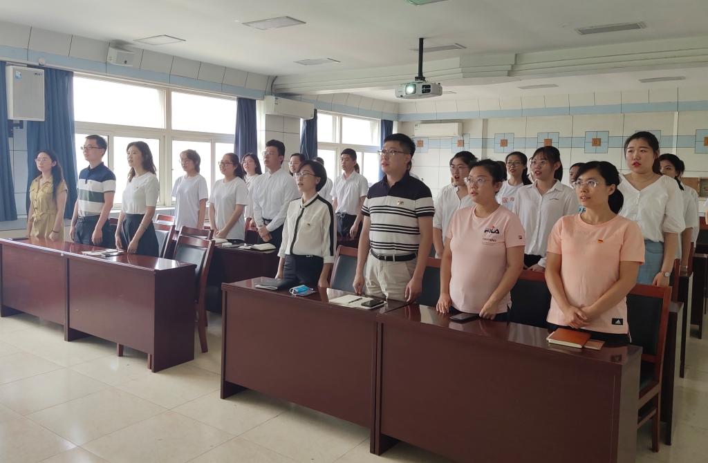 6月29日上午,英国上市公司365党委于千佛山校区田家炳教育书院4330会议室举行新党员入党宣誓仪式。党委副书记刘永慧、学生党支部支委会成员和21名新发展的学生预备党员参加会议。会议由英国上市公司365学生第二党支部组织委员、2018级本科生辅导员伊曼主持。