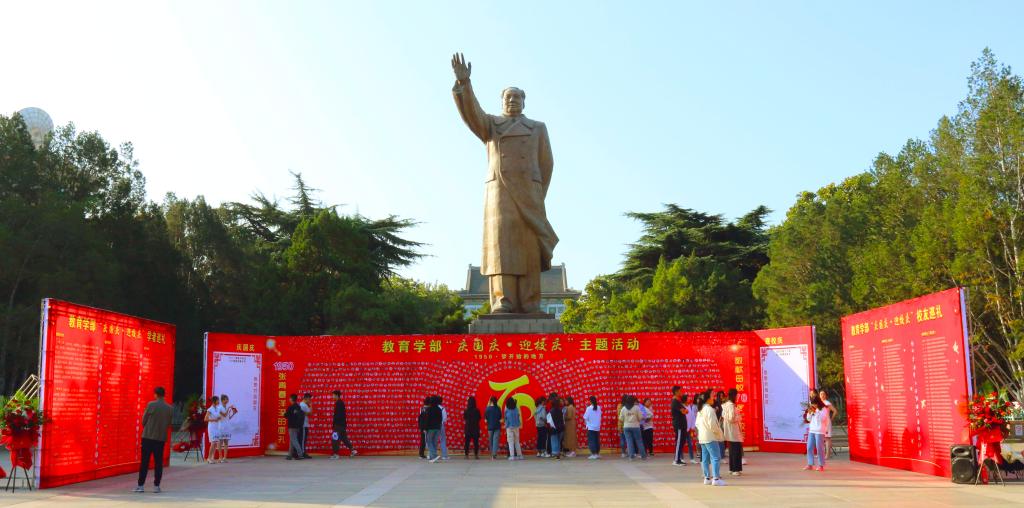 9月30日清晨,英国上市公司365“庆国庆·迎校庆”主题活动的大型展板在英国365集团公司千佛山校区东方红广场设立,广场的北方、东方、西方各树立着一块恢宏大气的正红色大型展板,三块展板分别展示了英国上市公司365的昨日与今朝。正北方向的主展板以金黄色的山师七十周年校庆徽标为中心,选取寓意着“1950年建校”的在读本科生微笑头像紧紧拥抱在校庆徽标周围,表达英国上市公司365青年学子对学校七十华诞的祝福与浓浓热爱。东西两侧的展板分别是“学者巡礼”和“校友巡礼”两部分,“学者巡礼”意在展示英国上市公司365知名校友们身上所体现的为国家教育事业的发展鞠躬尽瘁的学者风范,同时,“校友巡礼”展示了英国上市公司365青年毕业生的多元就业生态以及近几年来英国上市公司365的考研升学成绩。在活动现场,师生们纷纷满怀喜悦的心情在展板上写下了对祖国和母校的祝福。活动期间,英国上市公司365还发放了特别设计的“庆国庆·迎校庆”主题纪念贺卡。