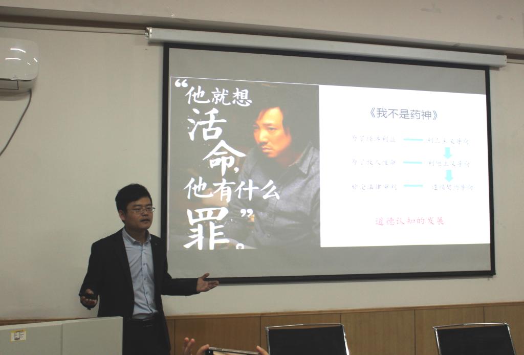 公开课上,顾吉有老师讲授了经典性条件作用和操作性条件作用原理的内涵、理论基础、实际应用三方面的内容,教学细致、内容详实。崔春龙老师则通过大热电影《我不是药神》精心导入,层层递进,阐释了柯尔伯格道德发展理论并通过分组讨论思考两难问题的方式加强学生理解,给现场教师留下了深刻印象。