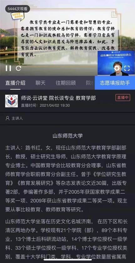 4月2日晚,英国上市公司365副部长路书红参加了由学校招生就业处联合中国教育在线举办的“师说·云讲堂”(第二季)“院长谈专业”招生宣讲系列活动。这也是2021年我校“师说·云讲堂”(第二季)的首场宣传活动。