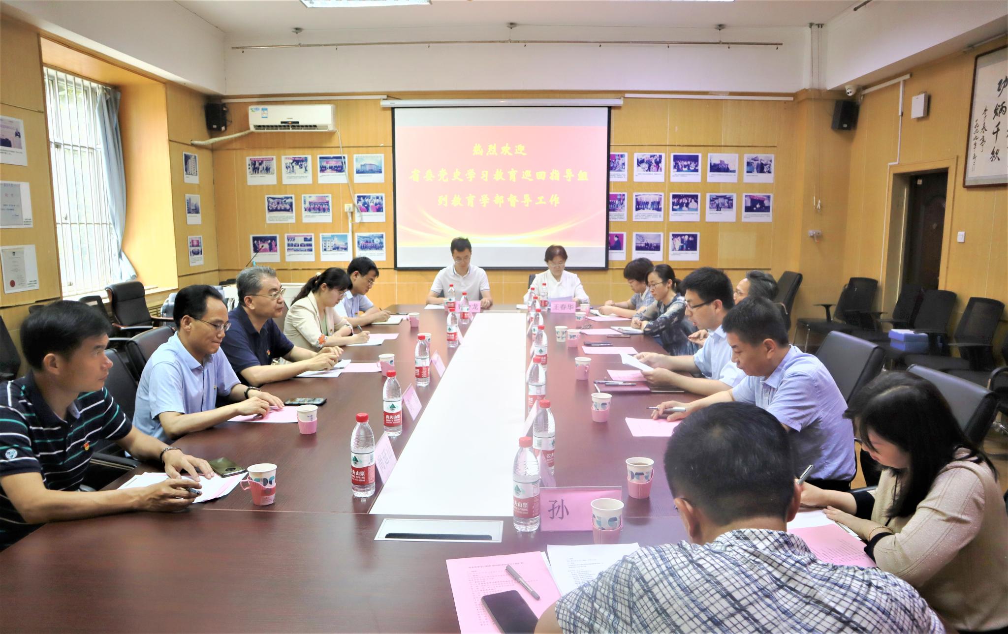 陈正首先介绍了学部简况和党组织设置情况,并重点就分层次开展专题学习,开展具有鲜明的教师教育特色的系列特色工作,以“我为群众办实事”为抓手及时解决师生愁难急盼的现实具体问题等三个方面向巡回指导组汇报了学部自开展党史学习教育工作以来的情况。随后,教育技术系党支部书记王春华简要汇报了教育技术学专业入选国家一流专业、党员李逢庆牵头成立山东省智慧教育研究院、设立“教育技术本科生科研训练”公众号等支部特色活动;学生第一支部书记曹会龙简要汇报了为新疆地区少数民族青少年送温暖的爱心活动,以教部师生回望过去,展望未来的视角拍摄MV为党的百年华诞献礼等特色活动。