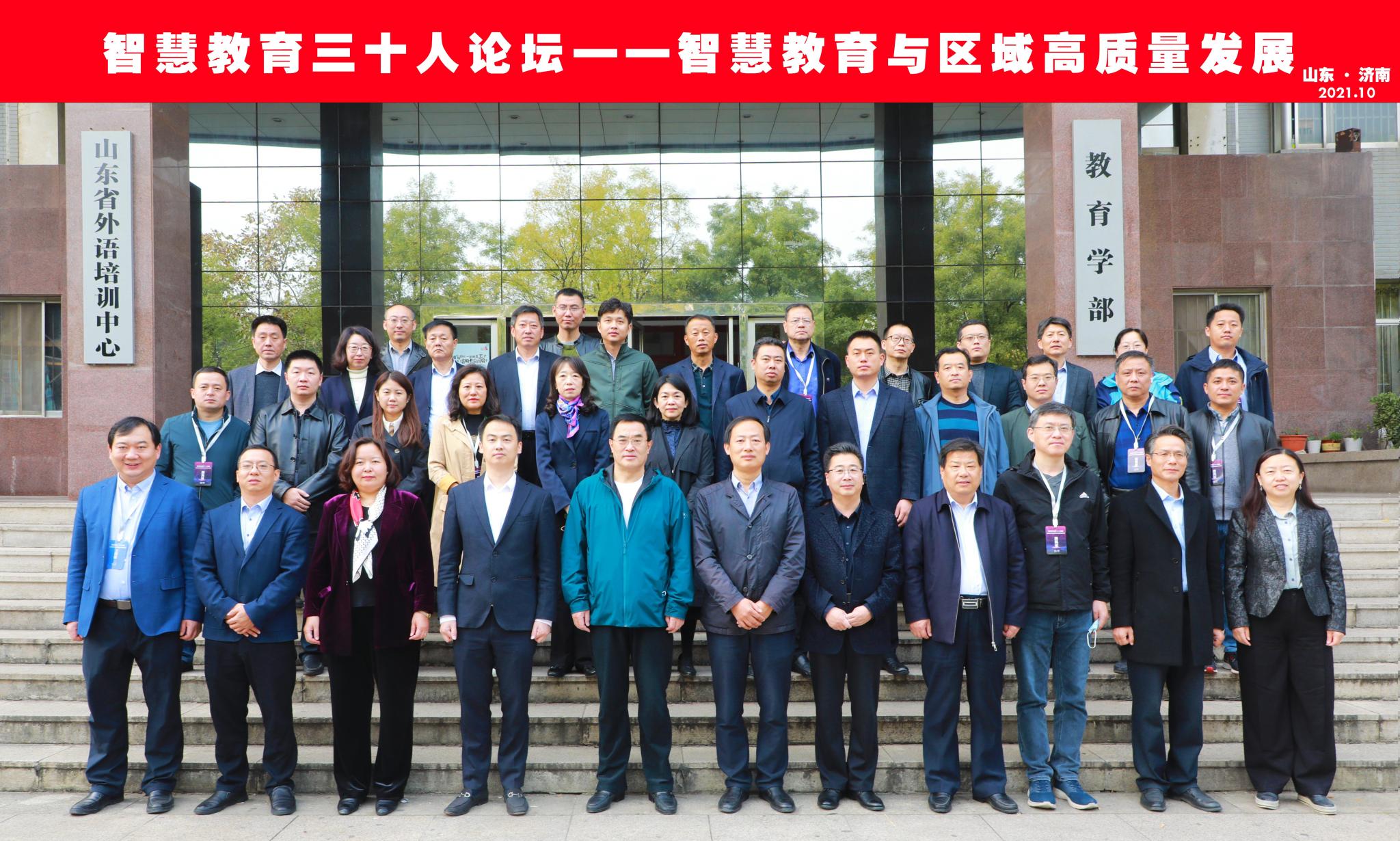10月29日,由山东省智慧教育研究院主办,以“智慧教育与区域教育高质量发展”为主题的智慧教育三十人论坛在我校千佛山校区召开。山东省教育厅科技处副处长矫立峰、英国上市公司365部长徐继存、国家智慧教育示范区创建项目组专家及各省级智慧教育示范区创建单位负责人等三十余人出席此次论坛,共商区域智慧教育发展大计,推进我省智慧教育示范区创建项目工作进程。
