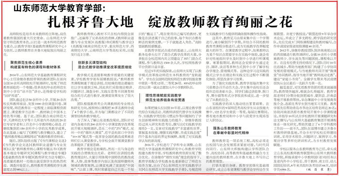 经过5年的实践探索,山东师大实现了以教学模式改革推动师范生本科教育的“变轨超车”。学生在全国师范院校师范生教学技能竞赛中荣获一等奖12项、二等奖28项。85%的毕业师范生以第一就业志愿加入中小学教师队伍。