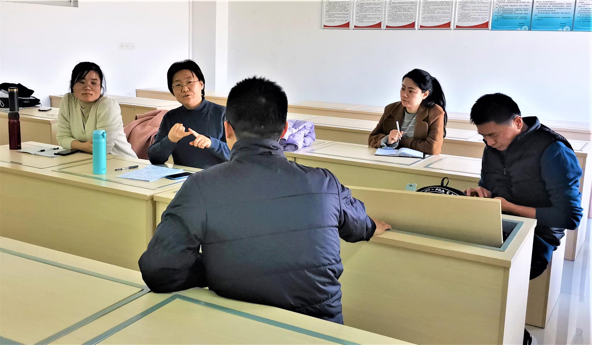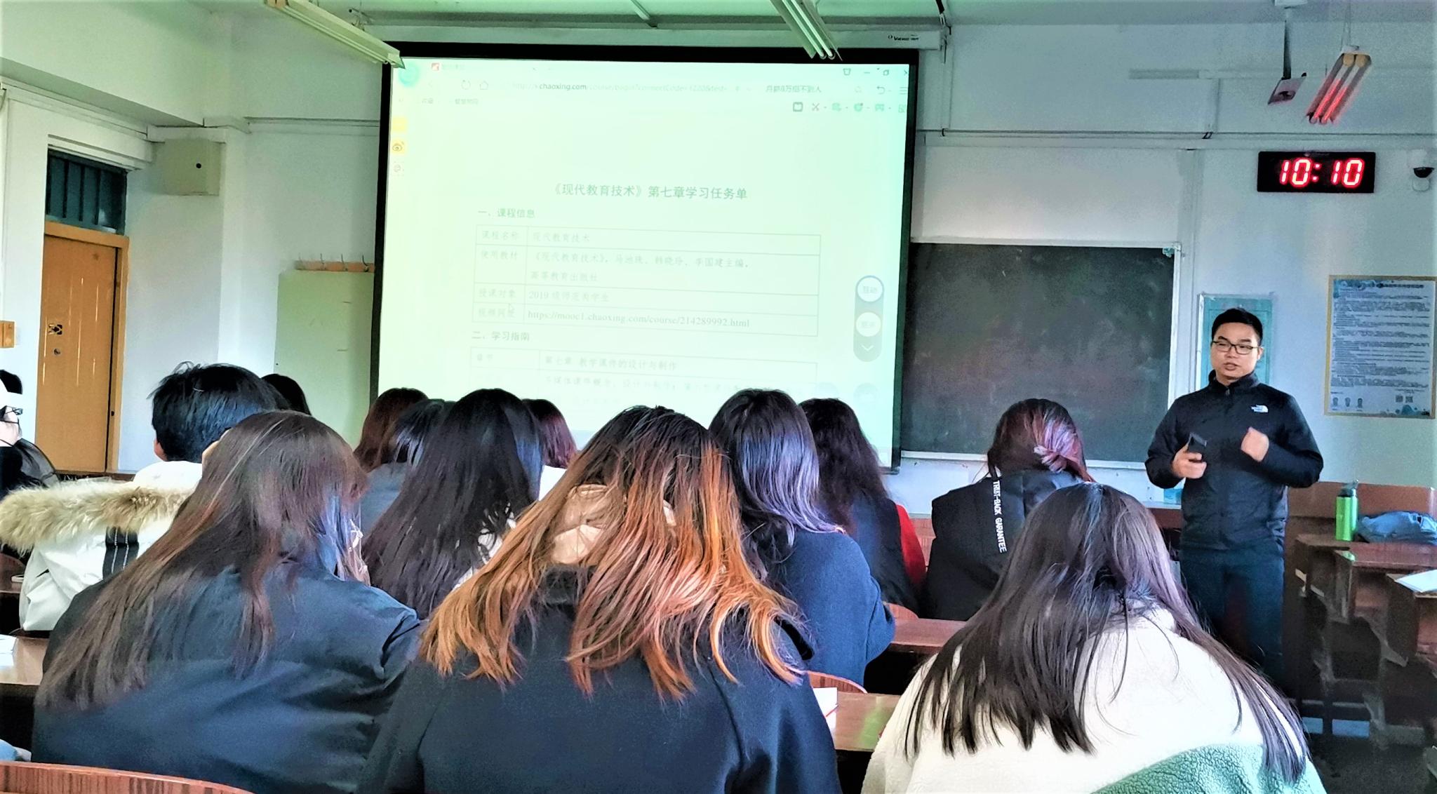为了加强教研室建设,有效提升教师教学水平,现代教育技术教研室于本学期开展了系列教研活动。10月25日,教研室的青年教师一同走进了谭金波老师《现代教育技术》的课堂,观摩学习谭老师混合式教学开展情况。在本节课堂上,谭老师组织了重点精讲、学习成果汇报、课前学习问题答疑等活动,课堂气氛活跃。课后,教研室召集了部分学生代表进行了座谈,了解他们本门课程的学习情况,以及对本门课程的学习内容、评价方式和学习活动组织等方面的问题和建议。同学们纷纷表达了自己的想法,韩晓玲老师针对共同的问题进行了解答。座谈结束后,教研室的相关老师根据目前课程教学中出现的问题进行了讨论,并对下一步课程教学开展做出了相应调整和安排。