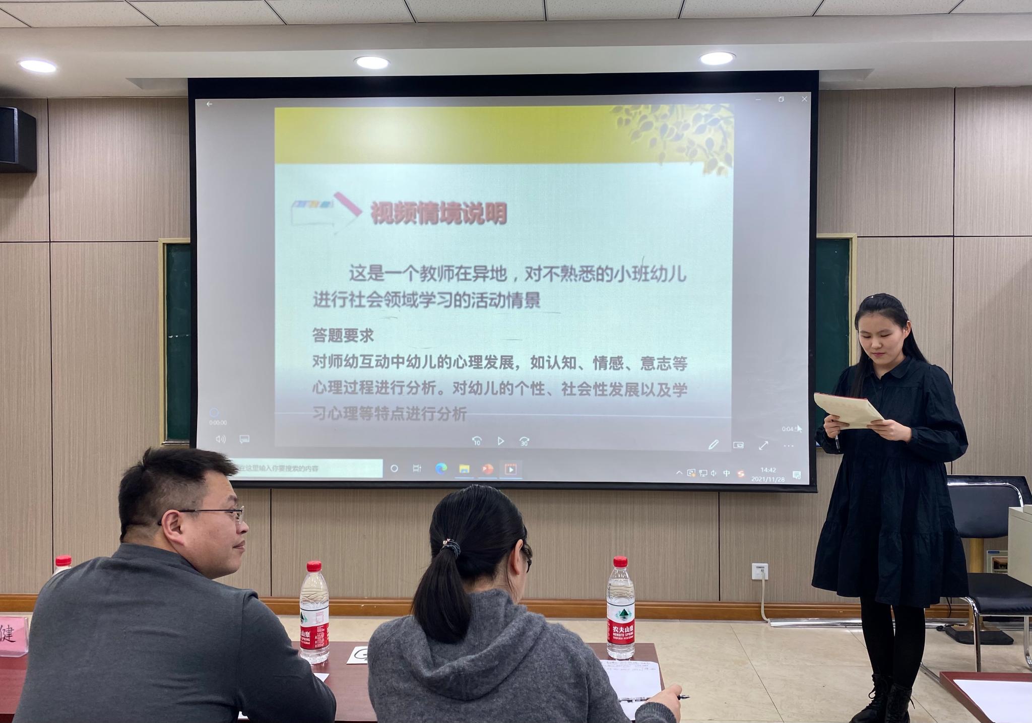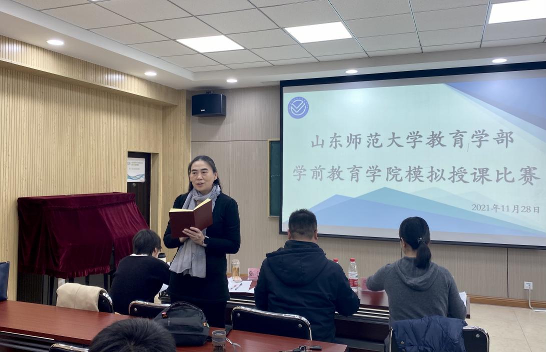 模拟授课包括授课和答辩两个环节。在授课环节,参赛的学生认真选题、悉心备课。不仅在演示文稿、背景音乐、语言表达、教学技巧等展示上下足功夫,还精心准备了辅助课堂的道具材料,使课堂变得生动有趣,充满吸引力,从多方面展示了专业素养。在答辩环节,参赛的学生围绕现场抽取的题目,展开有针对性、科学性的回应,体现了对幼儿园教育教学相关理论知识的理解和应用水平。比赛结束后,张小永老师对同学们的表现进行了点评。她肯定了参