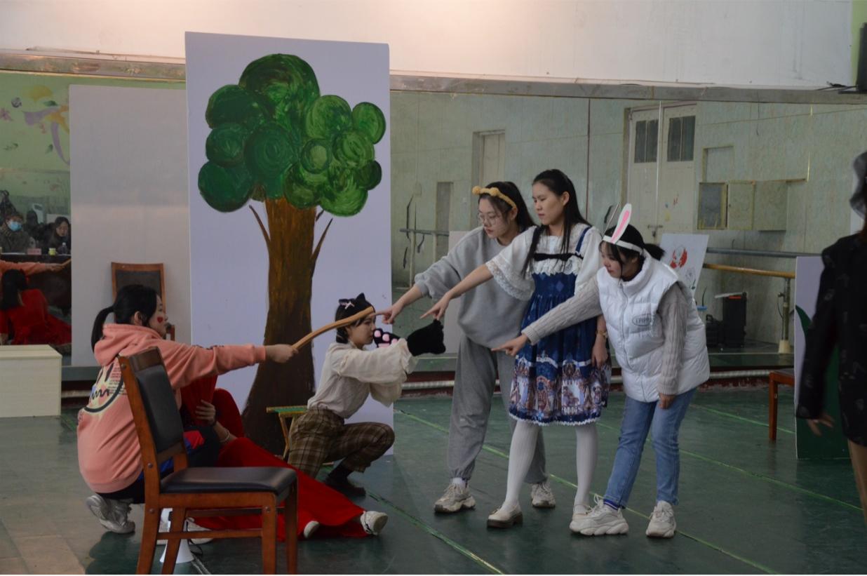 同学们在精心准备的基础上展开了精彩绝伦的绘本剧展演,让本来只属于绘本里的角色变得活灵活现。参赛的同学们准备了各种辅助表演的自制道具,为大家带来了《爱丽丝梦游仙境之馅饼奇案》《黑猩猩的面包店》等一批优秀节目。表演完成后,王一鸥老师肯定了同学们精湛的演技以及在表演上的创新点,同时针对各队伍的实际情况指出了不足之处和改进意见,比如情节结构要更简明清晰,主题应更有意义,表演要具有互动性等等。