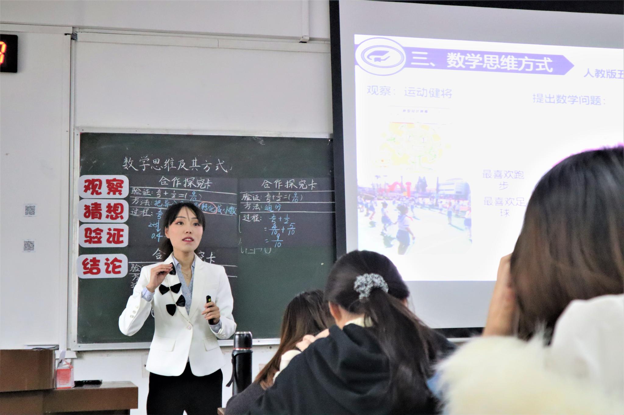 张丽老师的教学内容则围绕小学数学学习心理中的“数学思维及其方式”部分,从《被数学选中的人》纪录片导入,运用真实的小学数学课堂教学案例与数学文化数学史充分结合,贯穿数学思维内涵、数学思维特点、数学思维方式三个教学重点内容的讲授,通过数学思维魔方和游戏环节,引导学生切实掌握数学思维方式,应用数学思维过程进行课堂教学设计并实践,以期在今后教学实践中灵活运用数学思维促进小学生数学学习。