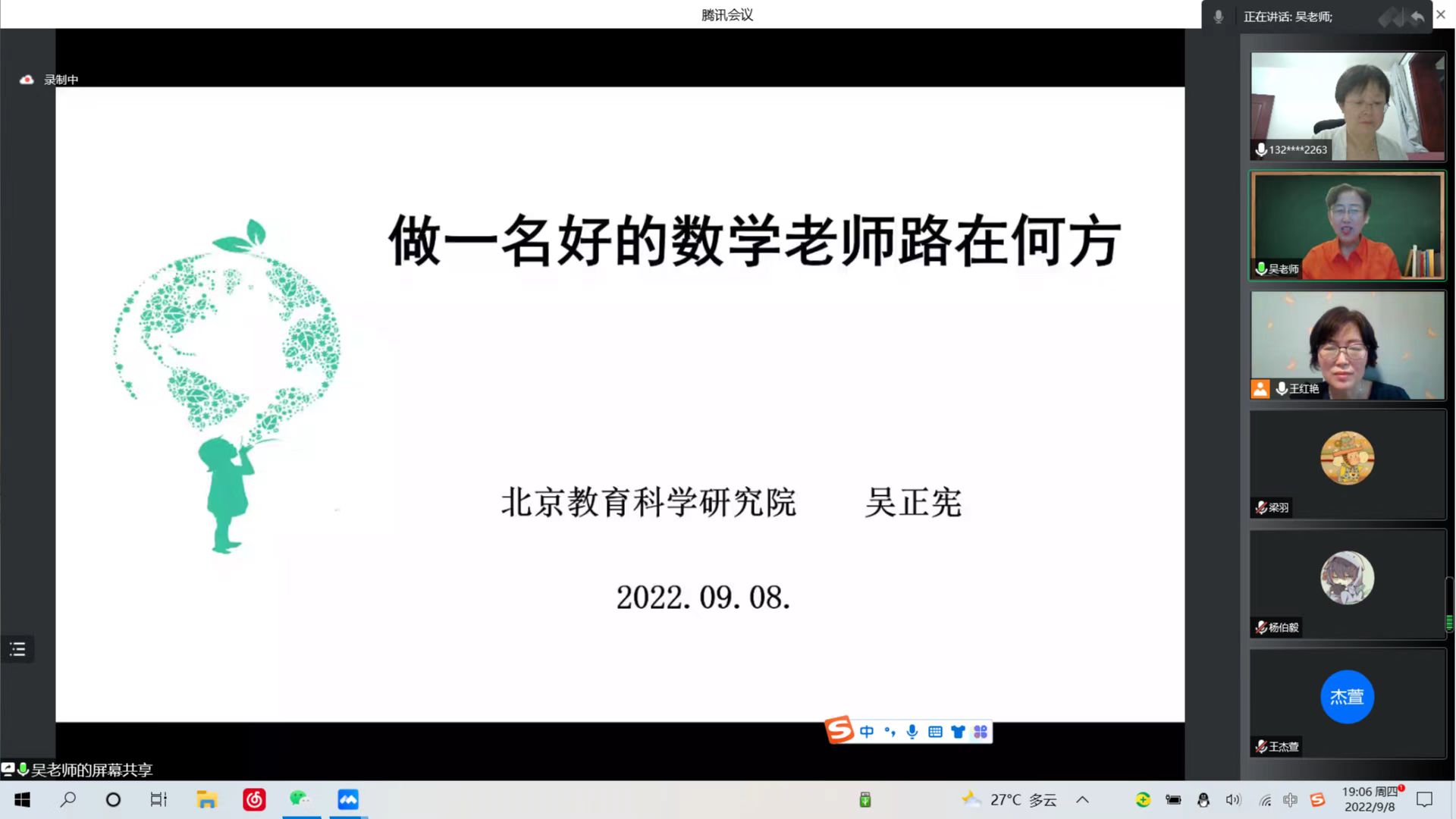 为培养小学教育专业学生的教育情怀,提高学生的小学数学教学能力,2022年9月8日晚19时,英国上市公司365小学教育系举办本科生实践教学活动“听听名师怎么说”,邀请北京教育科学研究院正高级教师、数学特级教师、全国模范教师、教育部义务教育数学课程标准组专家吴正宪作线上分享报告。英国上市公司365副部长路书红主持本次活动,小学教育专业部分教师及全体本科生、研究生参加了此次活动。