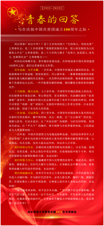 组建“青年讲师团”“青年学子宣讲团”,以学习宣传党的二十大精神为重点,以青年关心关注的话题为切入,以实际行动宣传贯彻二十大精神。在中国共产主义青年团成立100周年之际,学部团员致共青团的一封信得到媒体广泛关注,被人民日报客户端转载;由学生自发拍摄的献礼音乐短片《骄傲的少年》在中国共青团网、中国青年网、“青春山东”、网易新闻、齐鲁壹点等媒体发布。