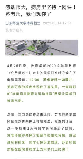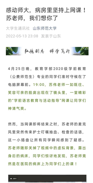 学部进一步加强师德师风和师资队伍建设,按照学校要求,认真开展了“树师德 正师风”专项整治工作,积极开展专题学习研讨、全员宣讲、警示教育等活动,涌现出了一批师德师风典型。苏伟老师在上半年封校期间,在病房里给学生上课的事迹,被学校官方公众号、本科招生公众号、“人力资源与教师工作”公众号等报道。1人当选为全省高校党代会代表,1人被评为学校2022年度“十佳工作者”,1人被评为第十五届山东师大“杰出青年”。