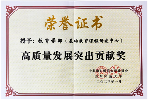 学部5项成果获山东省第三十五届社会科学优秀成果奖。其中二等奖3项、三等奖2项。徐继存教授申报的《学校课程建设的辩证逻辑》、冯永刚教授等申报的《论心态史视角下的教育史研究》、车丽娜教授申报的《论教师的社会理性及其培育》获得二等奖;孙宽宁教授申报的《我国课程知识研究70年的历程审思》、吉标教授申报的《走向协同教学:课程与教学改革的时代呼唤》获得三等奖。