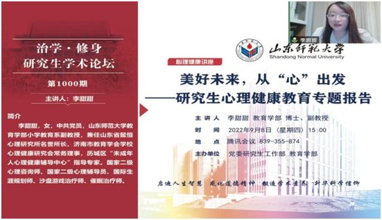学部关注研究生心理健康,面向研究生群体举办了“美好未来,从‘心’出发”心理健康讲座。成功举办“把我讲给你听”——“研途有我知心话”经验分享系列活动。