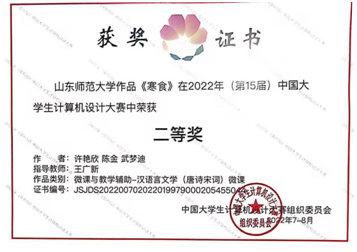 组织学生创新能力提升训练营,激发了师生参赛热情,19支队伍在“互联网+”创新创业大赛中获得校赛奖励,1支队伍获国赛铜奖、省赛金奖;1支队伍获“挑战杯”大学生创业计划竞赛省赛银奖;获中国大学生计算机设计大赛二等奖2项,iteach全国大学生数字化教育应用创新大赛二等奖1项、三等奖1项。1名学生获校长奖学金,6名学生获国家奖学金,2名学生获省政府奖学金,1名学生获济南奖学金,1名学生获“十佳团员”,1名研究生被评为校研究生“学术十杰”。