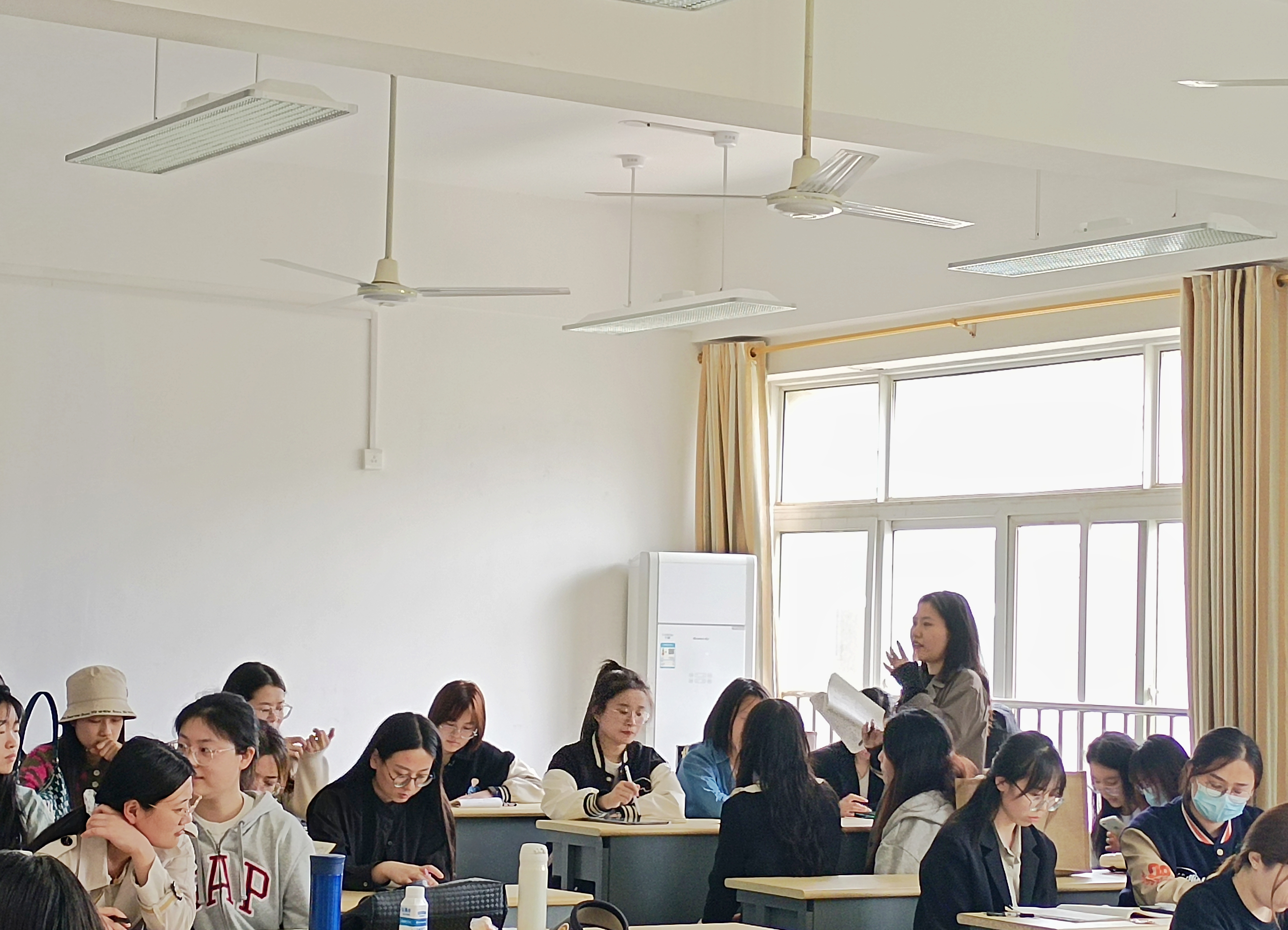 听课结束,锦屏学校张校长、贾主任等与王老师和小教研究生们在阶梯教室,针对教学设计、教学方法和教学效果等展开热烈的讨论。研究生们分小组集思广益,在讨论会上分享观点,相互学习,畅所欲言。最后,王红艳老师做总结发言,联系两个不同学段的课堂,让研究生们认识到了两个学段之间的共性与差异,这为初小学段间的衔接明确了方向。进入到初中的学习,老师应在学习习惯的培养、数学思想与方法的渗透等方面下功夫。张校长也强调了初小衔接的重要性,今后在实践中会进一步思考对策,帮助学生顺利适应小升初后新的学习环境。