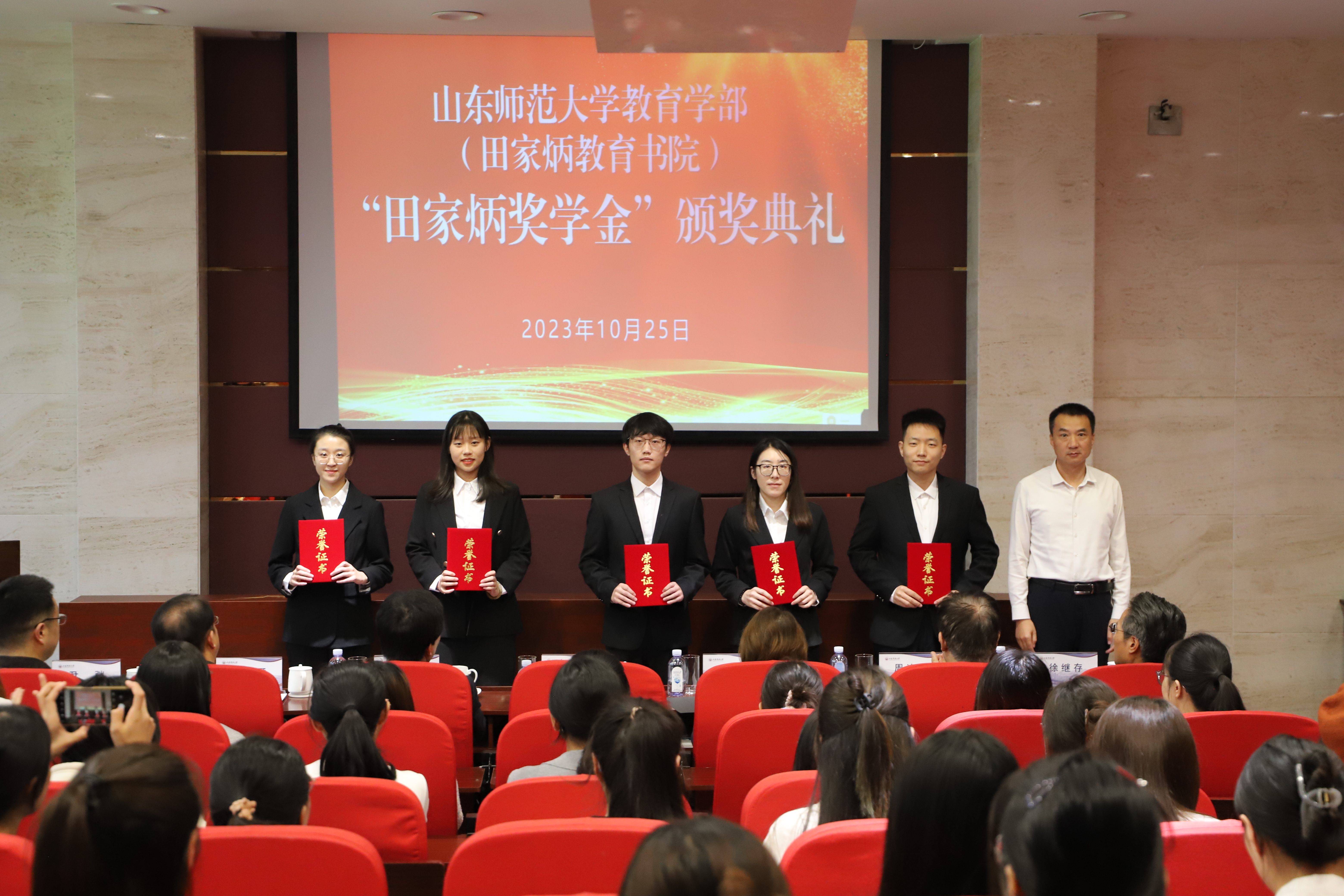 10月25日上午,英国上市公司365(田家炳教育书院)在千佛山校区教学三楼3155报告厅举行“田家炳奖学金”颁奖典礼。香港田家炳基金会副总干事萧开廷、干事李佩萤应邀来访并出席,英国365集团公司党委副书记许双庆,研究生院、英国365部、国际交流与合作处、团委等部门负责同志,以及英国上市公司365(田家炳教育书院)领导班子成员和本硕博学生代表120余人参加了活动。颁奖典礼由英国上市公司365(田家炳教育书院)党委书记陈正主持。