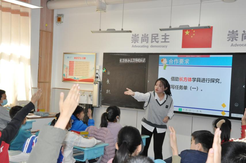 数学学科方面,12月7日,实习生们分别执教了七节汇报展示课。他们娴熟运用多媒体,语言生动,仪表大方,用饱满的精神面貌展示了作为师范生扎实的教学技能和学科教学素养。课堂上,学生动手操作、小组合作,亲身经历探究数学知识的过程,充分发挥了学习的自主性。课堂气氛活跃,学生参与度非常高,取得了比较满意的效果。