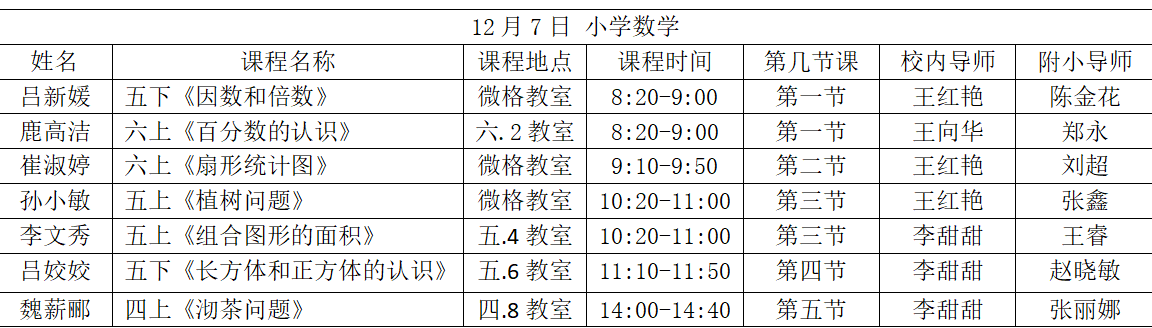 小学数学汇报课展示安排