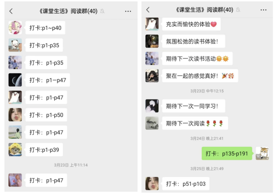 线下共读会结束后,活动进入第二个环节——学生自主阅读。同学们各自持续开展阅读,并在微信群中打卡记录,相互促进,为后续环节做好准备。