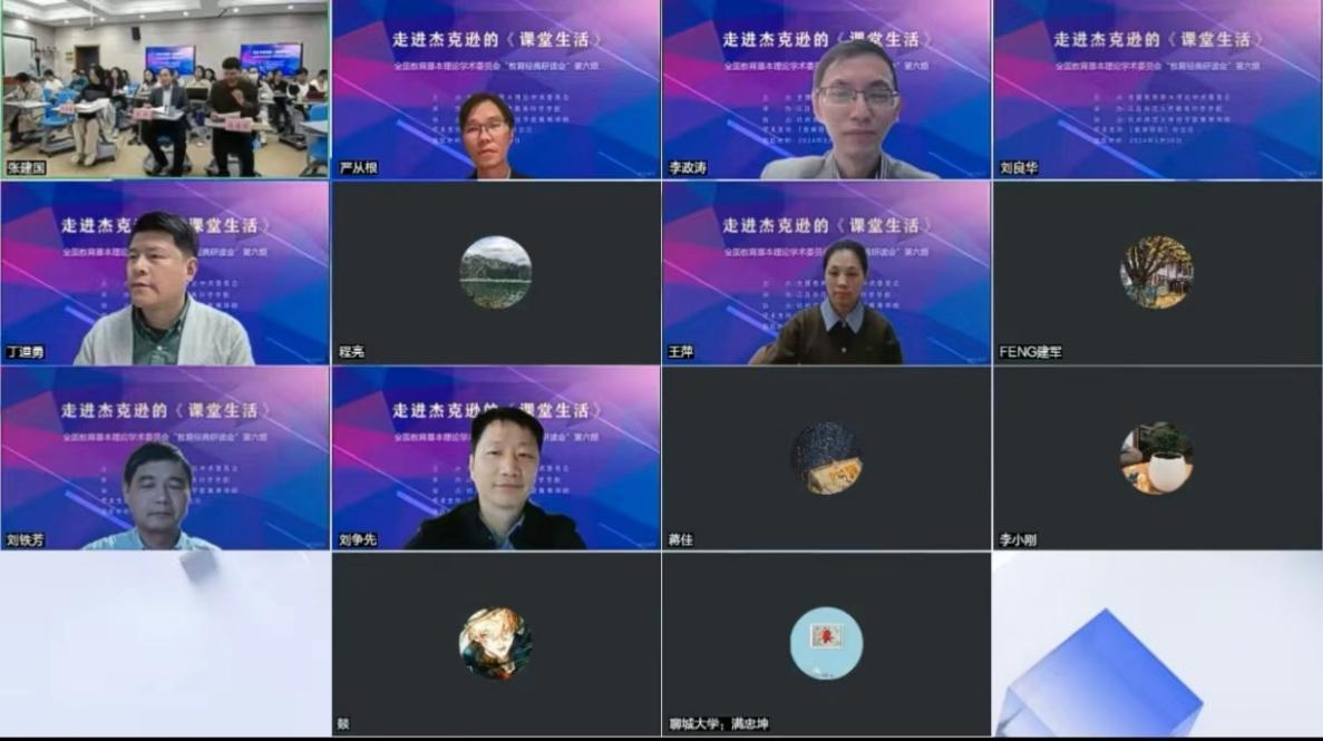 3月30日,沙龙进入第三个环节——名师线上领读,师生在线观看由全国教育基本理论学术委员会主办的学术研读会——《走进杰克逊的<课堂生活>》。在研读会中,该书译者、北京师范大学副教授丁道勇老师进行领读,多位学术大家围绕杰克逊的教育思想和诸多教育实践中的重要问题展开了深入探讨,分享了研究心得。
