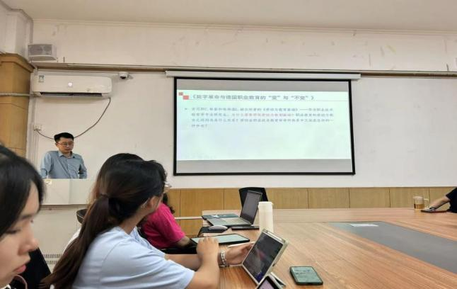 2024年5月10日下午,南京师范大学教育科学学院副教授郝天聪为职业技术教育学专业研究生做学术报告,题目为“德国职业教育与经济社会观察”。报告会由山东职业技术教育研究院常务副院长吉标教授主持。