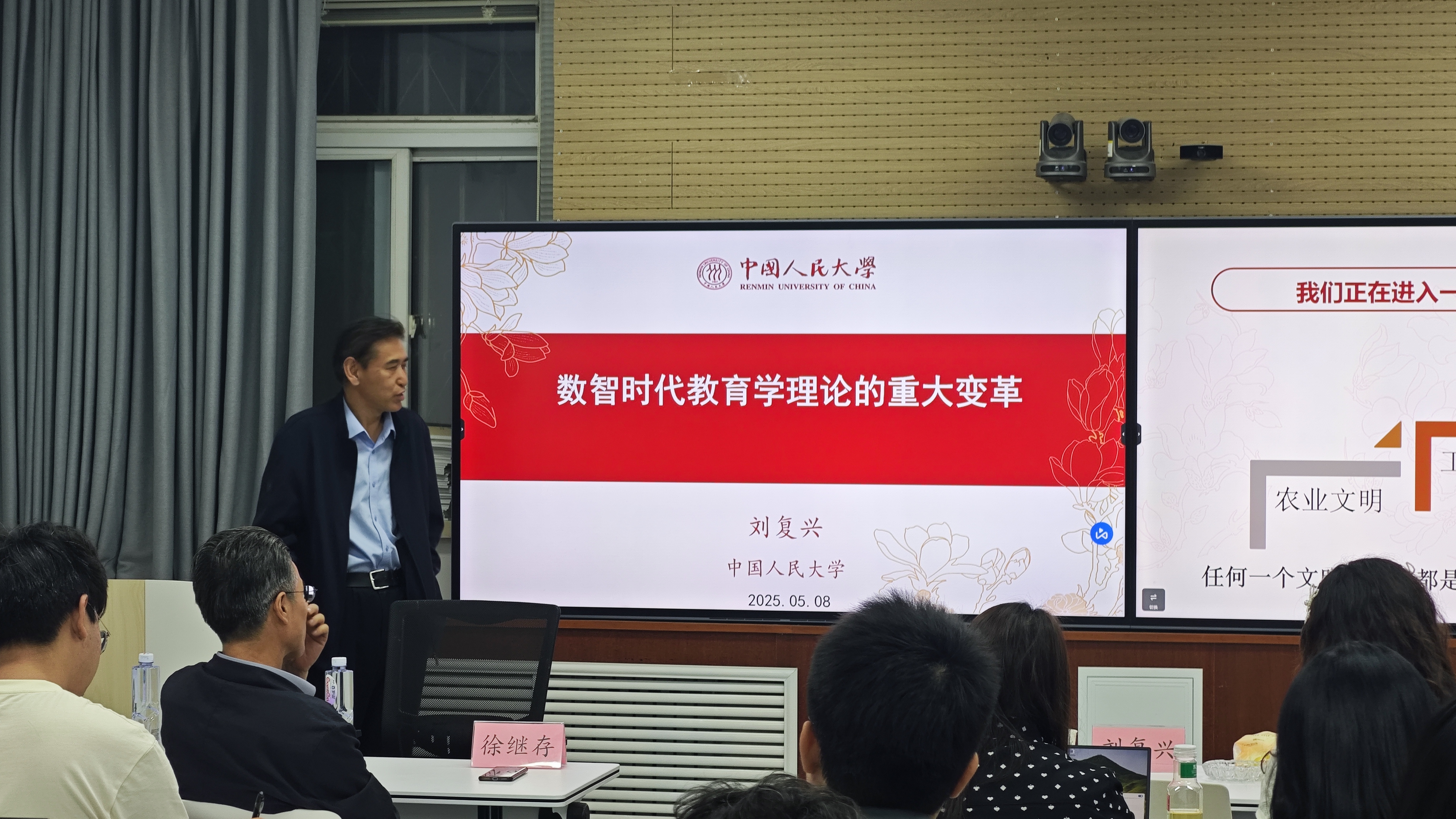 活动开始,刘复兴教授以人类文明演进三阶段为引,指出数智时代已然来临。他从时代特征、理论创新需求和方法路径三个维度,系统阐述了教育理论转型的必然性:数字技术与AI正在重塑社会结构,教育必须重构底层逻辑,建立新型技术哲学。他强调,大国崛起必先振兴教育,建设教育强国需要发展具有中国特色的数智教育学,提升师生数字素养,把握国际发展潮流。互动环节中,师生就科技与传统文化的融合、数智素养培育等议题与刘复兴教授展开深入交流,现场讨论热烈。