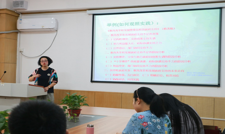 好的教育研究成果,除了强烈的实践关怀,还应该有其理论方面的诉求和建树,具有理论品性。接着,林岚博士讲了具有理论品性的研究的三个层次。第一个层次是提出问题—分析问题—解决问题的框架。这种论文要明确:选题越宽泛,越要抓准问题,理论品性体现在问题提出的现实性、问题分析的严谨性、问题解决的适切性等方面。第二个层次是突破宽泛的题目,基于一定的观照视角,对题目进行切分。这类研究成果的理论品性突出体现在对具体教育问题的分析上启用了让人耳目一新的观照视角。第三个层次是以系统的分析框架来统领所研究的问题。林主任指出,教育学论文写作目前还未完全摆脱文学范畴,因此,要有一个系统地框架和适切的研究方法。