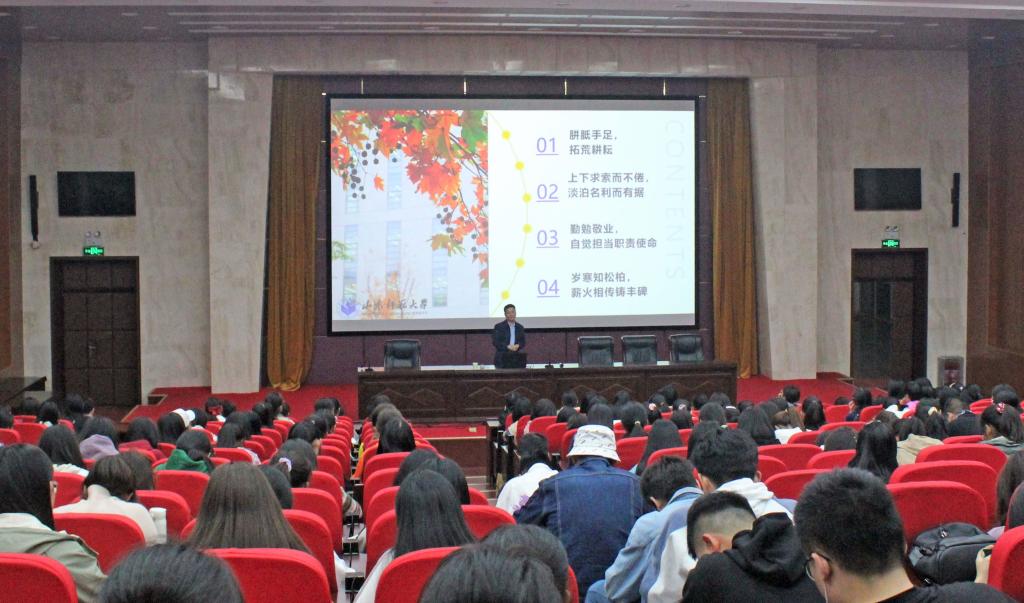 报告会伊始,冯永刚教授首先向到场的学生介绍了傅统先先生的生平事迹。接着分别从“胼胝手足,拓荒耕耘”“上下求索而不倦,淡泊名利而有据”“勤勉敬业,自觉担当职责使命”“岁寒知松柏,薪火相传铸丰碑”四个维度诠释了傅统先先生执着的教育情怀、艰苦谦逊的求学任教历程、献身教育事业的巨大成就以及伟大的精神品质等。