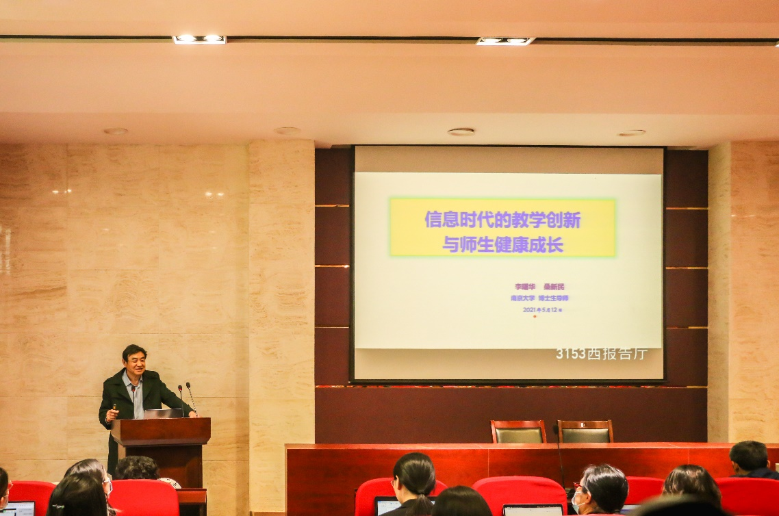5月12日下午,应英国上市公司365和教师教学发展中心邀请,未来教育专家、南京大学教育技术学博士生导师桑新民和南京大学哲学系博士生导师李曙华在千佛山校区三号教学楼3153报告厅作了题为“信息时代的教学创新与师生健康成长”的学术报告。英国上市公司365部分教师、本科生以及研究生共同参加了本次报告。
